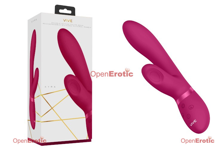 The KYRA pulse-wave, silicone clitoral rabbit, boasts a 10 function, vibrating G-spot tip, and a 10 function dedicated clitoral pulse-wave stimulator, guaranteed to satisfy your deepest desires. The 2 motors will give you over 100 possible unique settings to play with. Made from 100% silky smooth medical-grade silicone, the toy is 100% waterproof (ipx7), and extremely quiet at under 60db, which means you can use it wherever you choose. It contains a usb magnetic rechargeable, lithium-ion battery, that when fully charged with its usb cable, will provide 60 minutes of passionate playtime. Just plug and charge! When you're getting close to climax, just one-touch of the special function climax button will immediately bring all the motors to full power/speed and, more importantly, bring you to an earth-shattering orgasm.