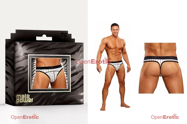Lo Rise Panel Thong Black-White Stripe - Extra Large