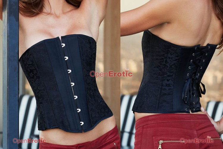Satin-Hemdchen und Shorts mit Spitzenborte Schwarz-Silber - S/M