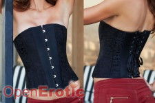 Satin-Hemdchen und Shorts mit Spitzenborte Schwarz-Silber - M/L (Baci)